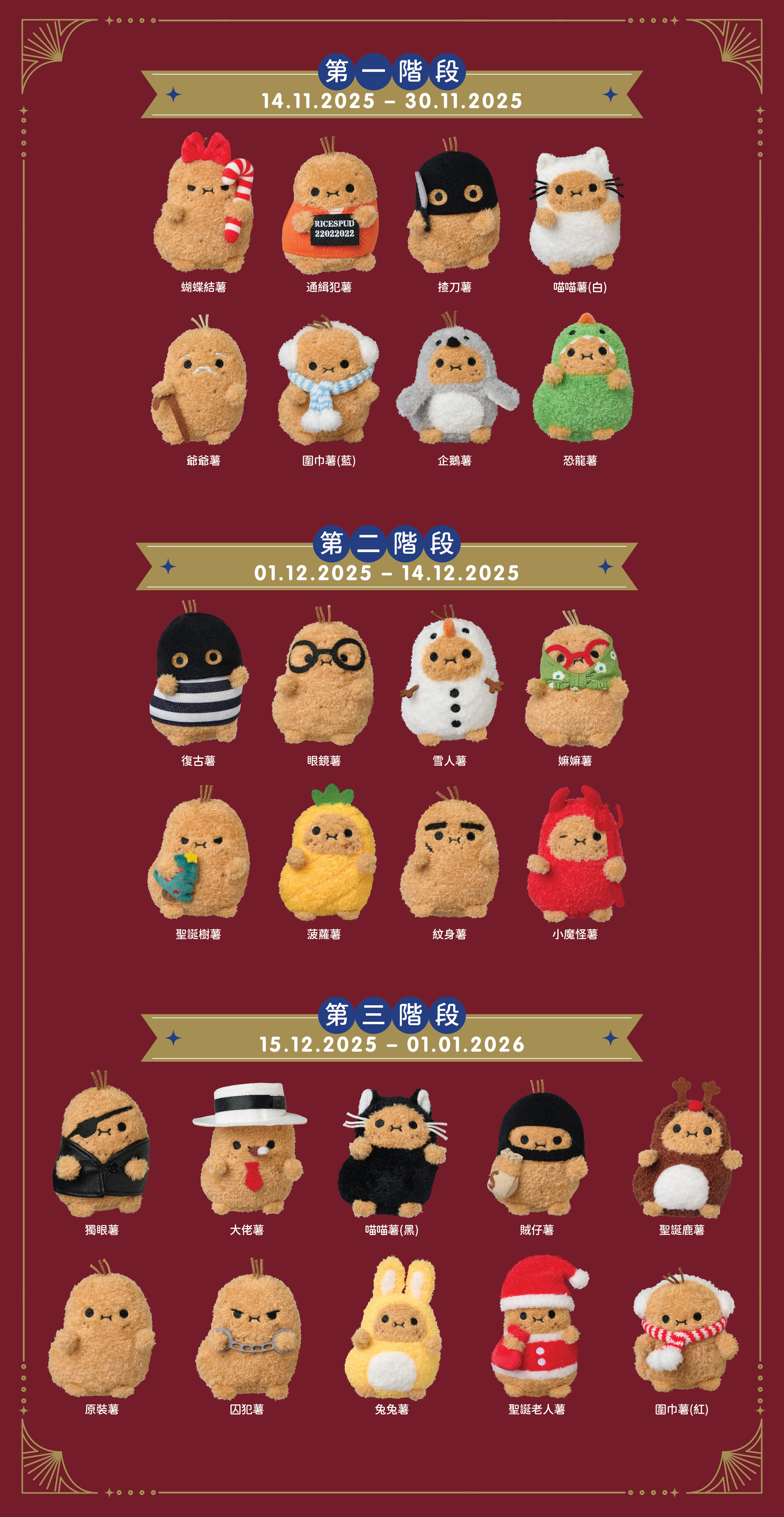 From 14 Nov, LP CLUB members can redeem one set of the limited edition Souper PotatoMas (including a Christmas card and stickers) by spending a specified amount via electronic payment at Langham Place (with each receipt amounting to HK$100 or more).